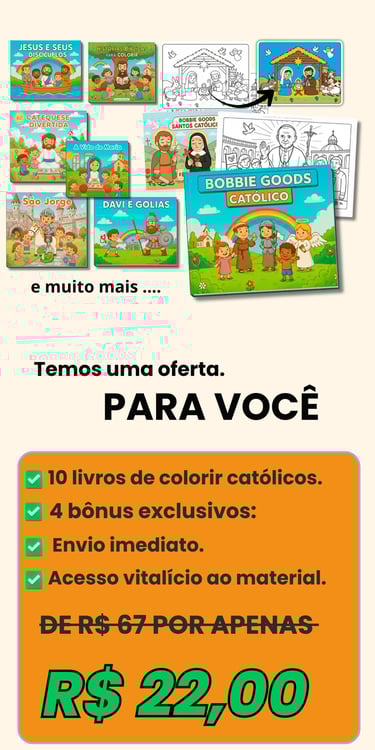 Um material único, que transforma o tempo diante das telas em momentos de fé, alegria e aprendizado. Ensine o amor de Deus com cores, histórias e símbolos que encantam e evangelizam.